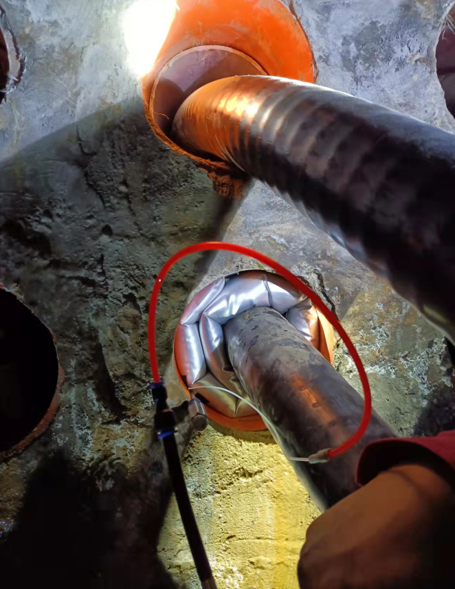 1)管線進出孔:采用柔性密封氣囊封堵管道孔洞,避免出現(xiàn)管道接口密封不嚴或管道破裂產生的土層滲水。